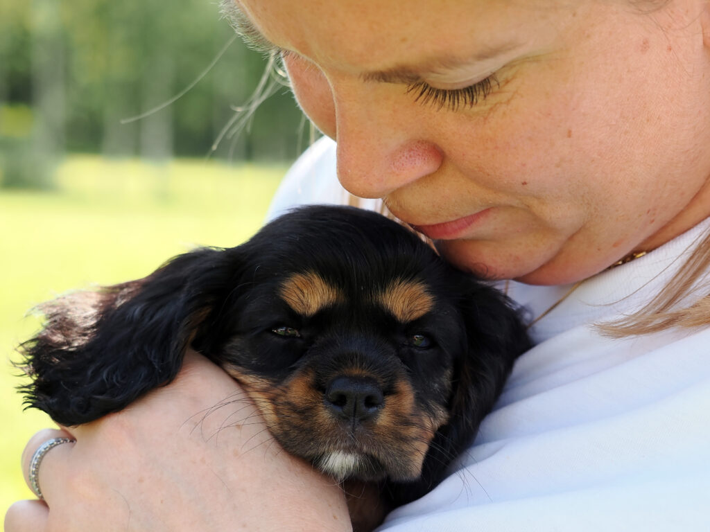 En ljuvlig liten fröken som vill vara med i allt. Hon satt tidigt mitt bland alla valparna och sökte min blick.
